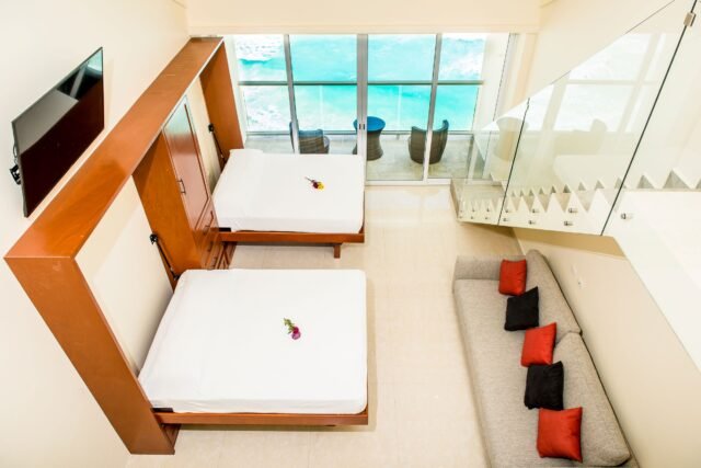 El edificio ofrece amenidades como piscina con camastros, restaurante y bar, acceso directo a la playa, Wi-Fi, estacionamiento, servicio de limpieza y gimnasio, además de ser uno de los pocos en la Zona Hotelera que permiten rentas a corto plazo, lo que lo convierte en una excelente oportunidad de inversión.