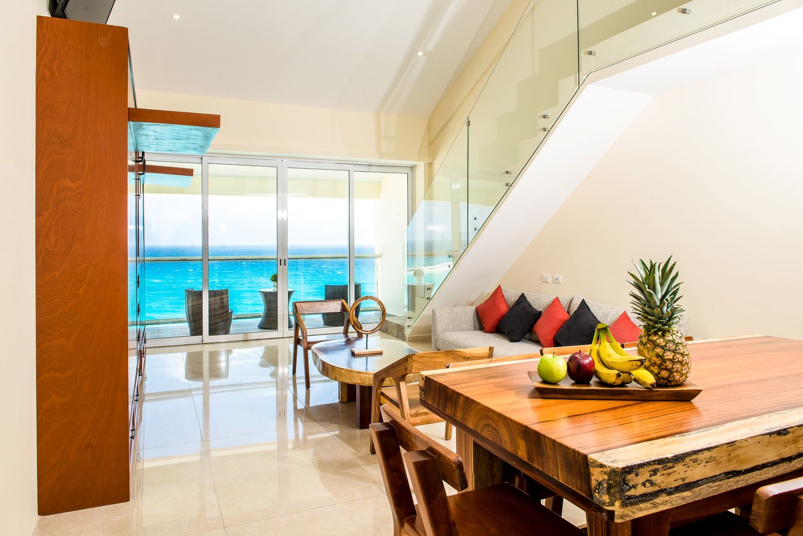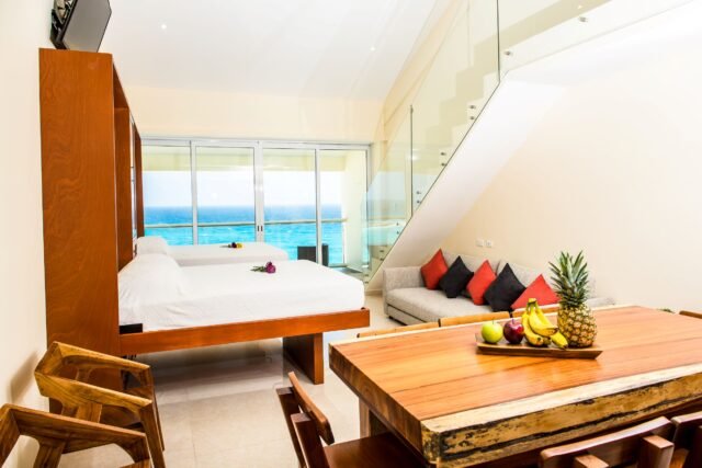 This two-story penthouse with 700 sqft sits directly on the beach, allowing you to step outside and be just moments away from the white sand and turquoise Caribbean Sea. It is also located only a 1-minute walk from more than 30 restaurants, bars, and Cancun’s famous nightlife, near Chac Mool and Forum Beach.